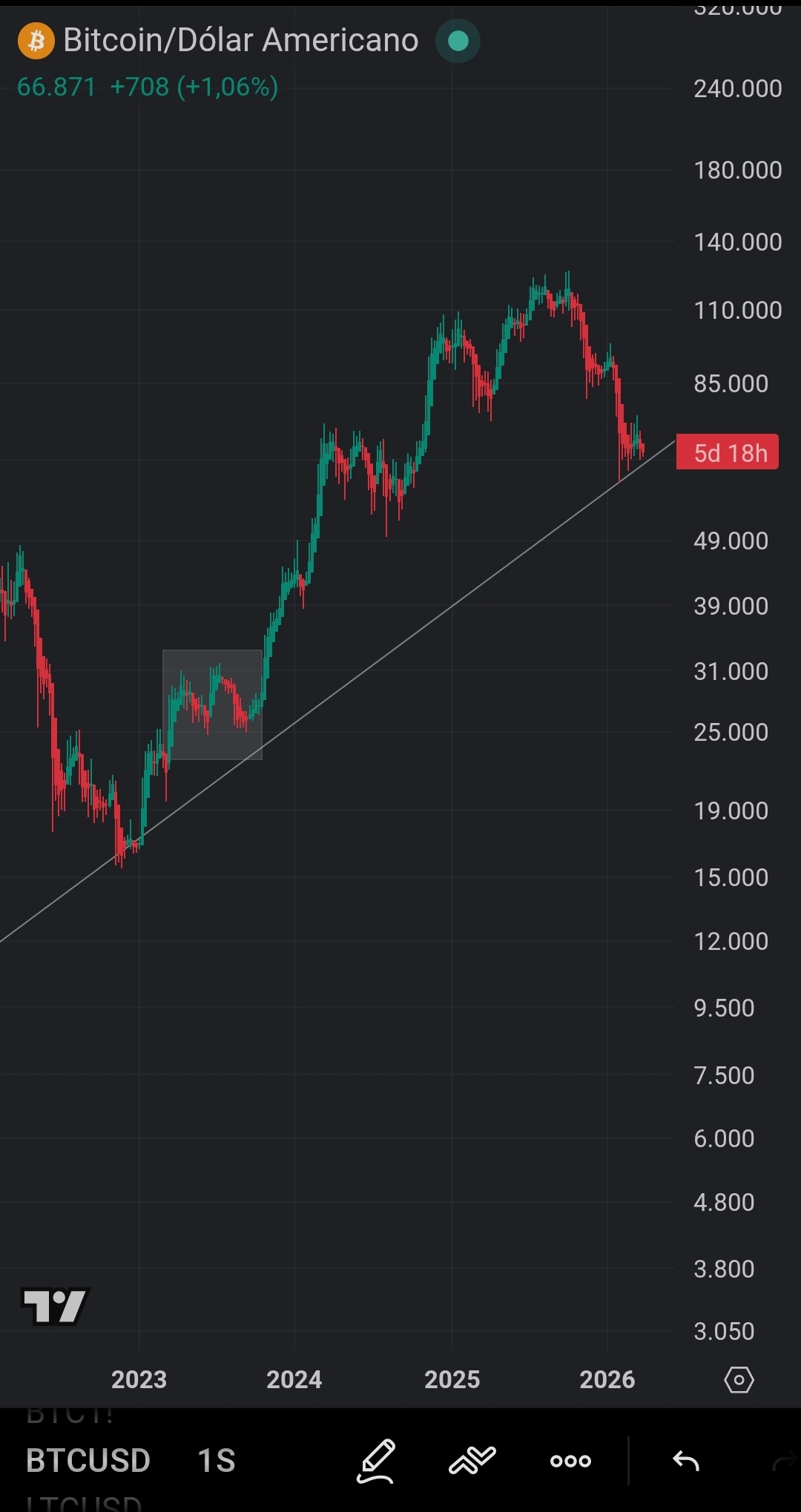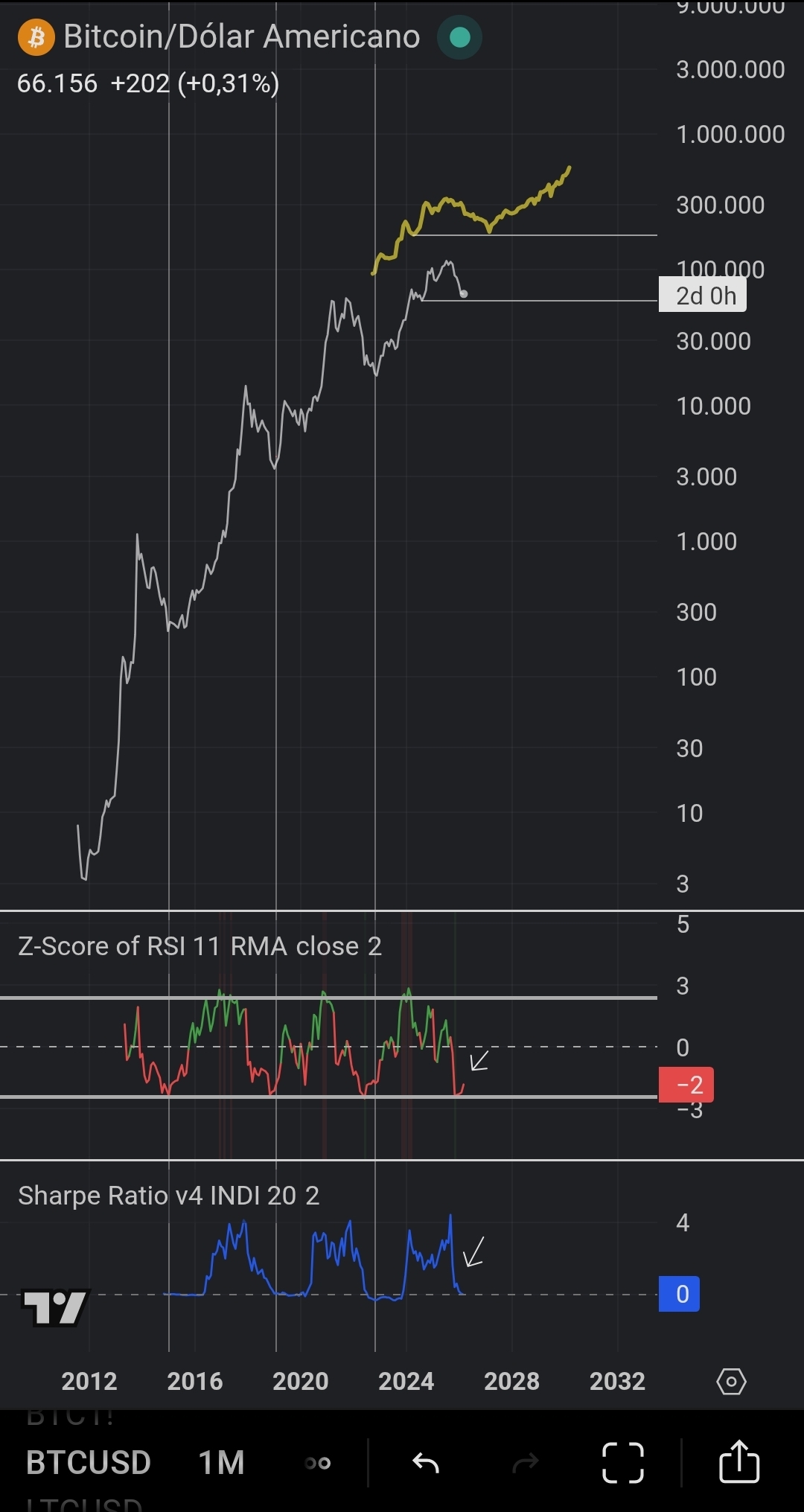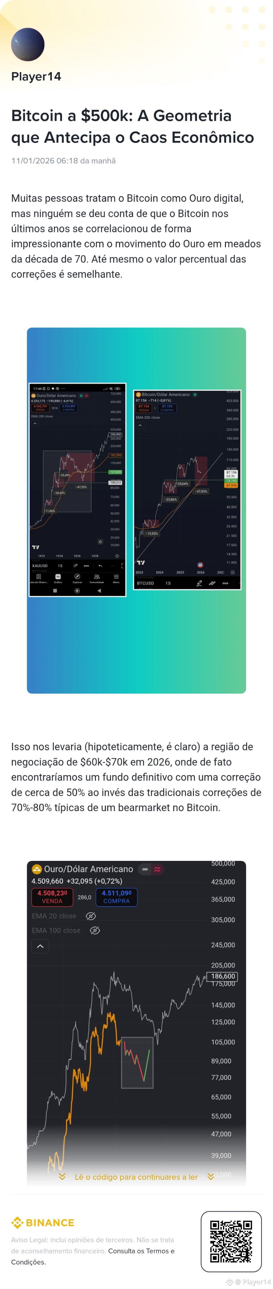 Właściwie już odpowiedziałem na to miesiące temu. 11 stycznia, gdy Bitcoin był na poziomie 87k i wielu uważało, że cena szybko osiągnie nowe maksima, napisałem artykuł pokazujący, że w rzeczywistości region 60-70k prawdopodobnie będzie ostatecznym dnem, biorąc pod uwagę ten fraktal Złota.