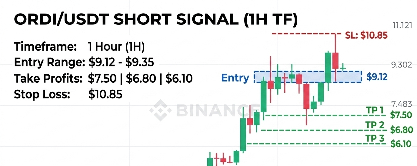 ORDI has been absolutely flying, but nothing goes up in a straight line forever. Looking at the chart, we just hit a local peak at $10.70, and the current candle is struggling to maintain that momentum.