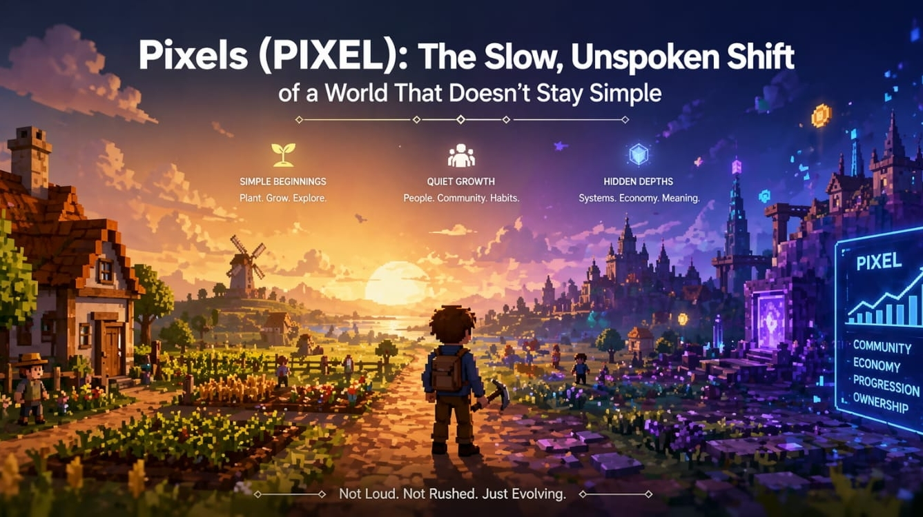 To dla mnie prawdziwe pytanie dotyczące Pixels. Nie tylko czy jest dobry, czy zły, ale co się z nim dzieje, gdy jego cicha rutyna w pełni się ustabilizuje. Prosta pętla może pozostać prosta, lub może powoli ujawniać się jako wierzchnia warstwa czegoś gęstszego: ekonomia społeczna, przestrzeń kształtująca nawyki, wspólne środowisko zbudowane na systemach, które stają się widoczne dopiero po upływie wystarczającego czasu. Pixels nie ogłasza tej ewolucji głośno. Pozwala jej dziać się w tle.
