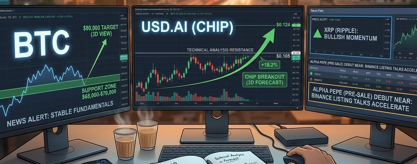 CoinCurrent Trend3-Day OutlookBTCStable / SidewaysPotential bounce to $80k if support holds.ETHBearish (-4.7% week)Likely to stay suppressed due to DeFi outflows.SOLVolatileRecovering from ecosystem hacks; high risk.CHIPAccumulationBullish technical setup for an ~18% move.