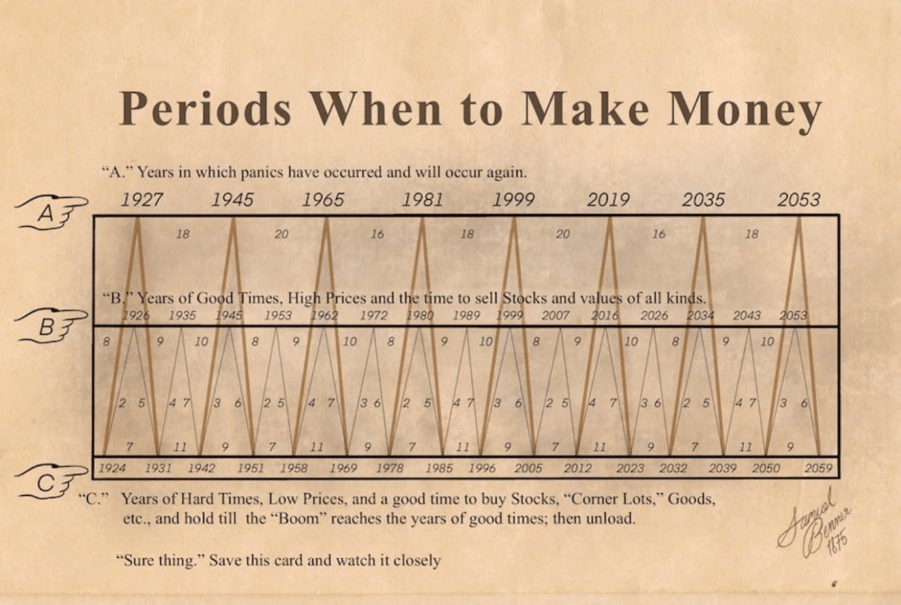 Wykres dzieli historię na trzy powtarzające się fazy.