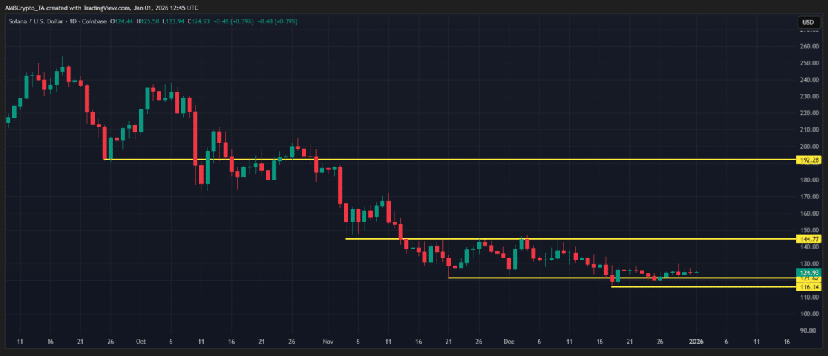 Na rynku cenowym, Solana zakończyła rok 2025 jako najsłabsza z dużych kryptowalut, z spadkiem przekraczającym 35%, co wywarło wyraźną presję na zaufanie ogółu.