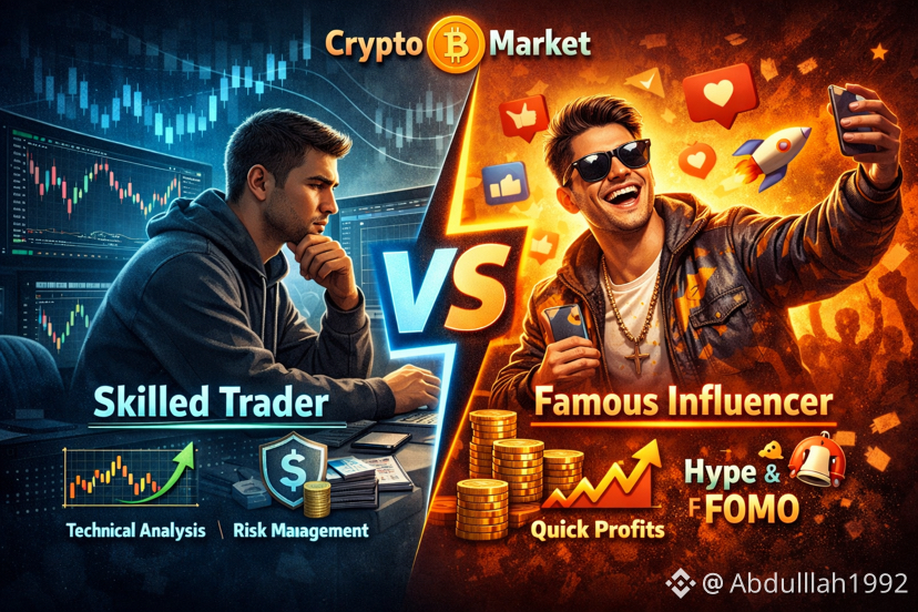 في Crypto Market المبتدئ غالبًا يعتمد على أشخاص يوجهونه، لكن المشكلة أن الشهرة لا تعني دائمًا الخبرة، وهنا تظهر أهمية التفريق بين Skilled Trader و Famous Influencer، لأن هذا الفرق يحدد هل المتابع يتعلم فعليًا أم يكتفي بالتقليد فقط.