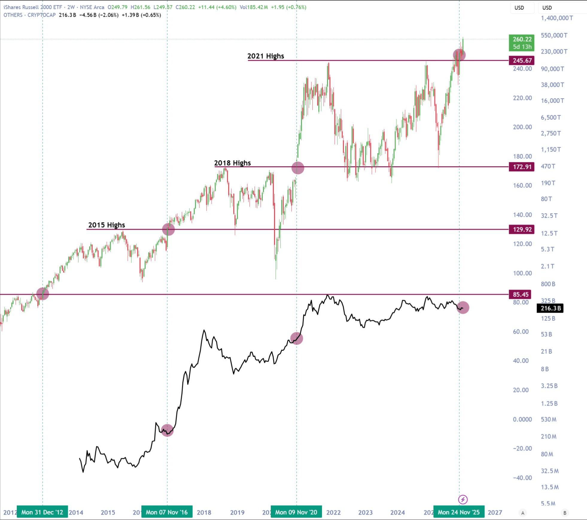 Na przełomie 2016 roku Russell 2000 przekroczył swój poprzedni rekord. W kolejnym roku, w 2017, kryptowaluty alternatywne doświadczyły silnego wzrostu.