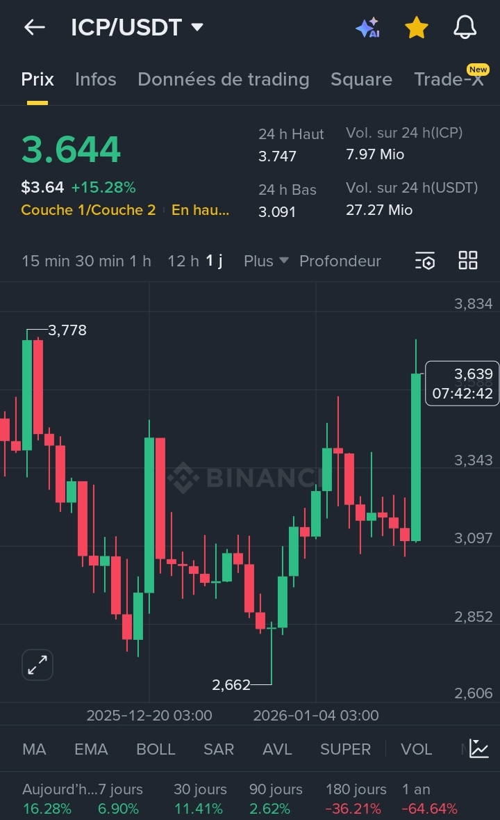 * Dynamika techniczna: ICP wykazuje oznaki przełamania wzoru spadkowego (falling wedge), który często wskazuje na silny wzrost. Potwierdzona zamknięcie powyżej oporu na poziomie 3,55 $ to sygnał oczekiwany przez traderów, który może prowadzić do celu 4,44 $.