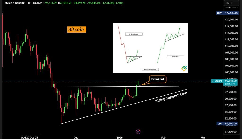 Dużo osób, które zakładają na spadki Bitcoina (shorty), straciło 123 miliony dolarów. Rynek kryptowalut wzrósł o 290 miliardów dolarów w pierwszych dwóch tygodniach 2026 roku, co jest ogromne! 📈