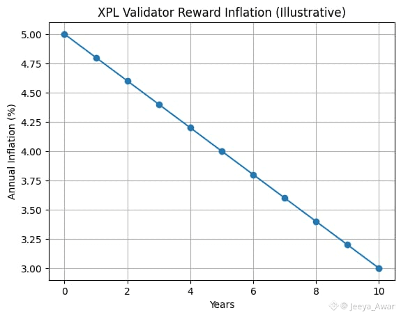 The token’s distribution reflects its dual role as both a utility and governance asset. Out of a total supply of 10 billion XPL, allocations are spread across ecosystem growth initiatives, the team, early investors, and a public sale. These tokens are subject to lockups and vesting schedules designed to support long-term alignment and prevent excessive early sell pressure. Inflation begins at 5% annually for validator rewards, gradually tapering to 3%, with EIP-1559-style fee burning helping offset supply growth as transaction volume increases. This combination of emission controls and fee-burning is meant to sustain validator participation while managing dilution for long-term holders.