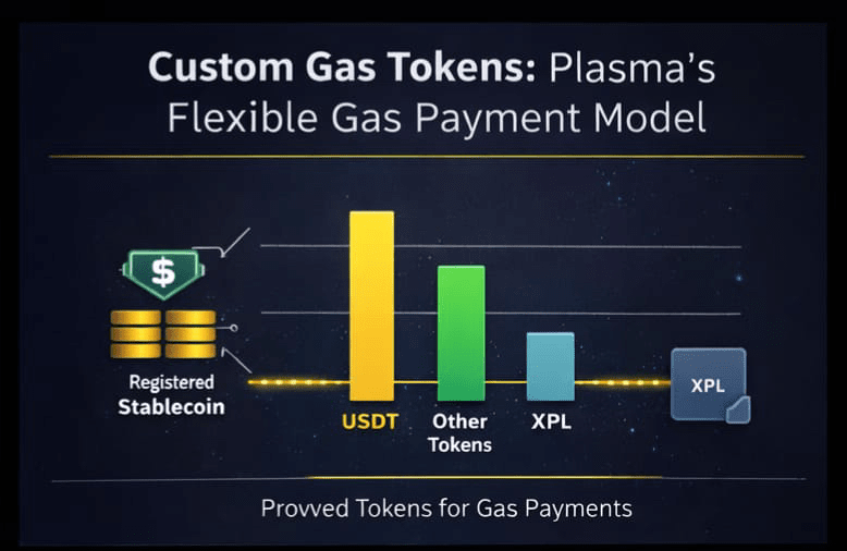 Następną rzeczą, która naprawdę mnie zatrzymała, była sposób, w jaki Plasma rozszerza tę samą logikę na szersze niestandardowe tokeny gazowe. Podczas gdy większość łańcuchów wymaga, abyś zbudował własny system sponsorowania gazu lub używała kruchych warstw pośrednich, które łamią się podczas przeciążenia, Plasma integruje niestandardowe tokeny gazowe bezpośrednio na poziomie protokołu. To oznacza, że projekt może wyznaczyć swój własny token — lub stablecoin — jako token, którym użytkownicy będą wydawać na codzienne interakcje. Żadnych więcej „kup $5 rodzimym tokenem, zanim w ogóle zaczniesz.” Żadnego więcej ładowania każdego nowego portfela airdropowanymi dotacjami na gaz. Żadnego więcej blokowania procesu onboardingu na samym początku. To jest rodzaj projektu, który, jeśli zostanie szeroko przyjęty, fundamentalnie zmieni sposób, w jaki główne publiczności postrzegają Web3.