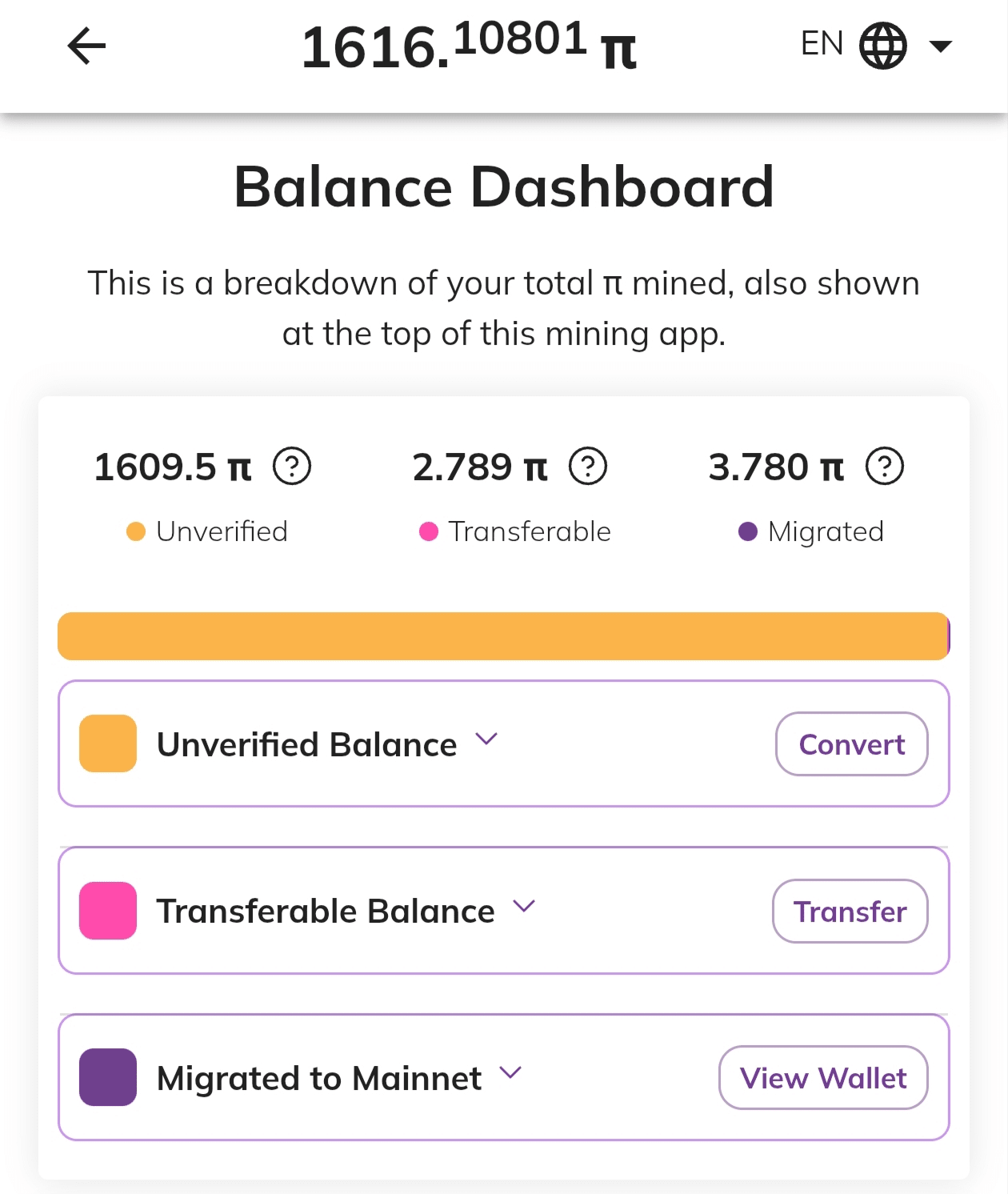 Atualmente, há três elementos: "Pi Transferível", "Pi Não Verificado" e "Pi Migrado". Para minha explicação, "Pi Migrado" não é importante, então eu vou pular.