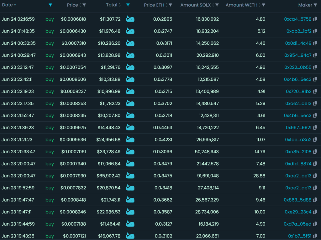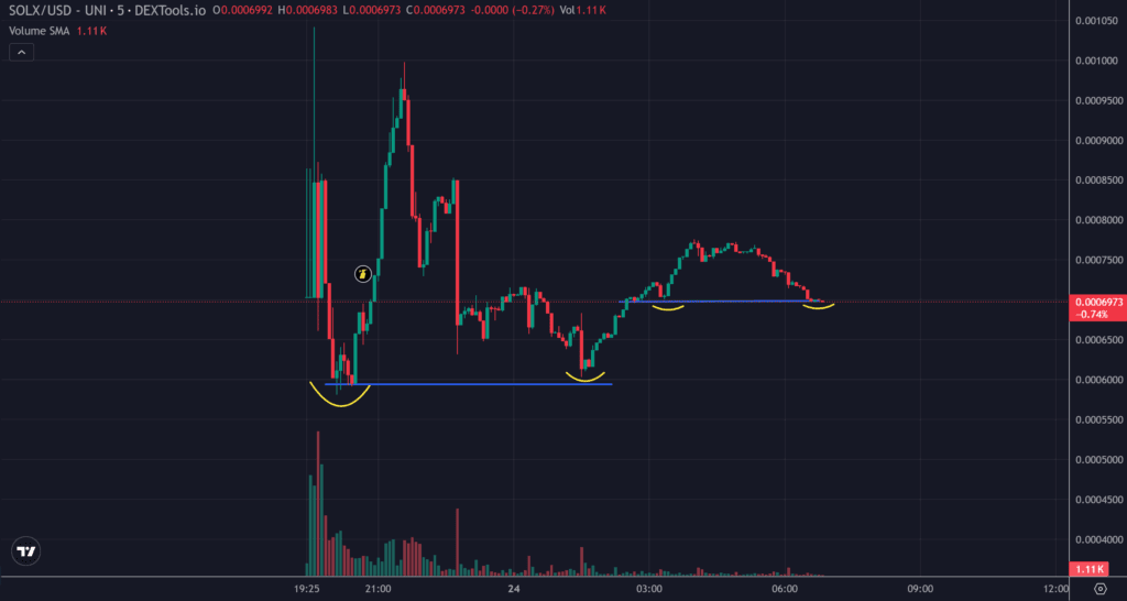 O preço do SOLX está experimentando uma volatilidade acentuada, como esperado com tokens de pré-venda sendo ativados. No entanto, a atividade precoce de baleias sugere forte confiança e alto potencial de valorização.