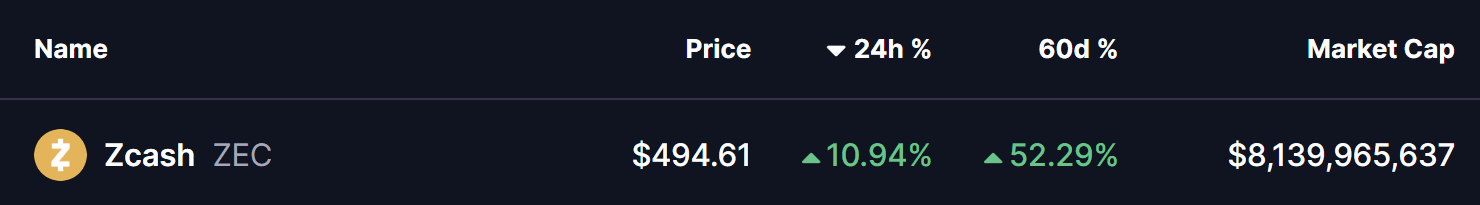 Zcash (ZEC), a criptomoeda focada em privacidade, continuou a superar grande parte do mercado mais amplo de altcoins, estendendo seu forte momento de alta. O token subiu quase 10% apenas hoje, levando seu rali de 60 dias a mais de 50%. Embora as condições gerais do mercado permaneçam mistas, a estrutura técnica do ZEC sugere que esse movimento pode não ter terminado ainda.