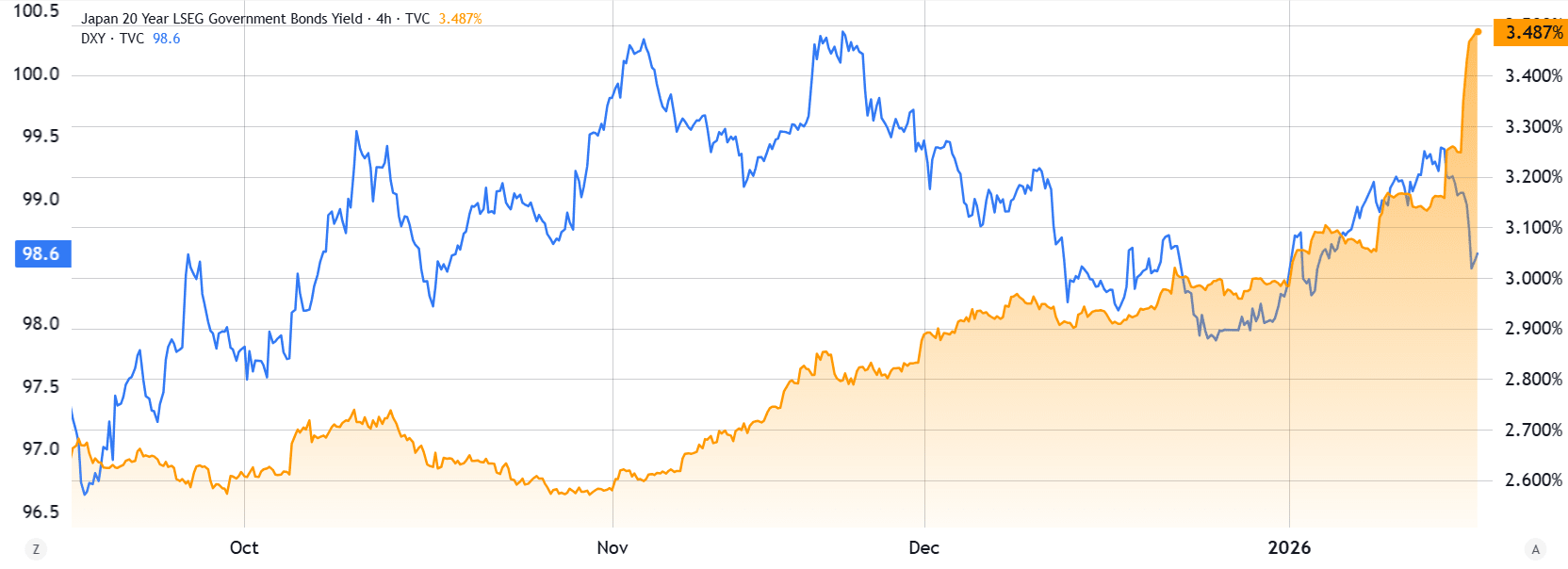 A atenção dos investidores se voltou para os riscos macroeconômicos à medida que os maiores bancos centrais do mundo enfrentam crescente pressão devido ao aumento dos custos de emissão de dívida. O Japão, a quarta maior economia do mundo, deve realizar uma eleição antecipada que pode conceder ao Primeiro-Ministro Sanae Takaichi um mandato para acelerar as medidas de estímulo, de acordo com o Financial Times. A dívida pública do Japão já excede 200% do produto interno bruto.