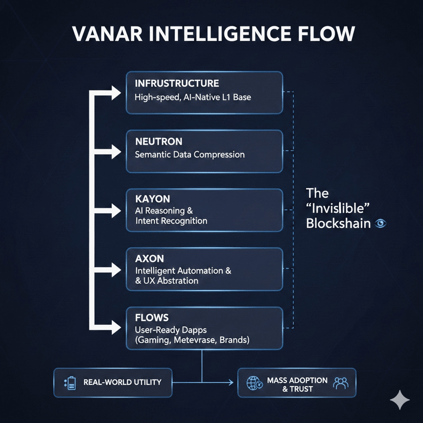 A Vanar não é apenas um livro-razão; é um ecossistema nativo de IA. Para entender por que é único, olhe para o fluxo de dados através de sua arquitetura: