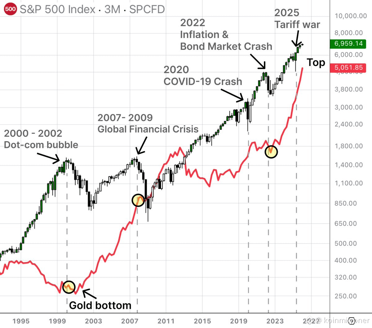 ➡️ O ouro subiu depois que as ações já estavam colapsando.
