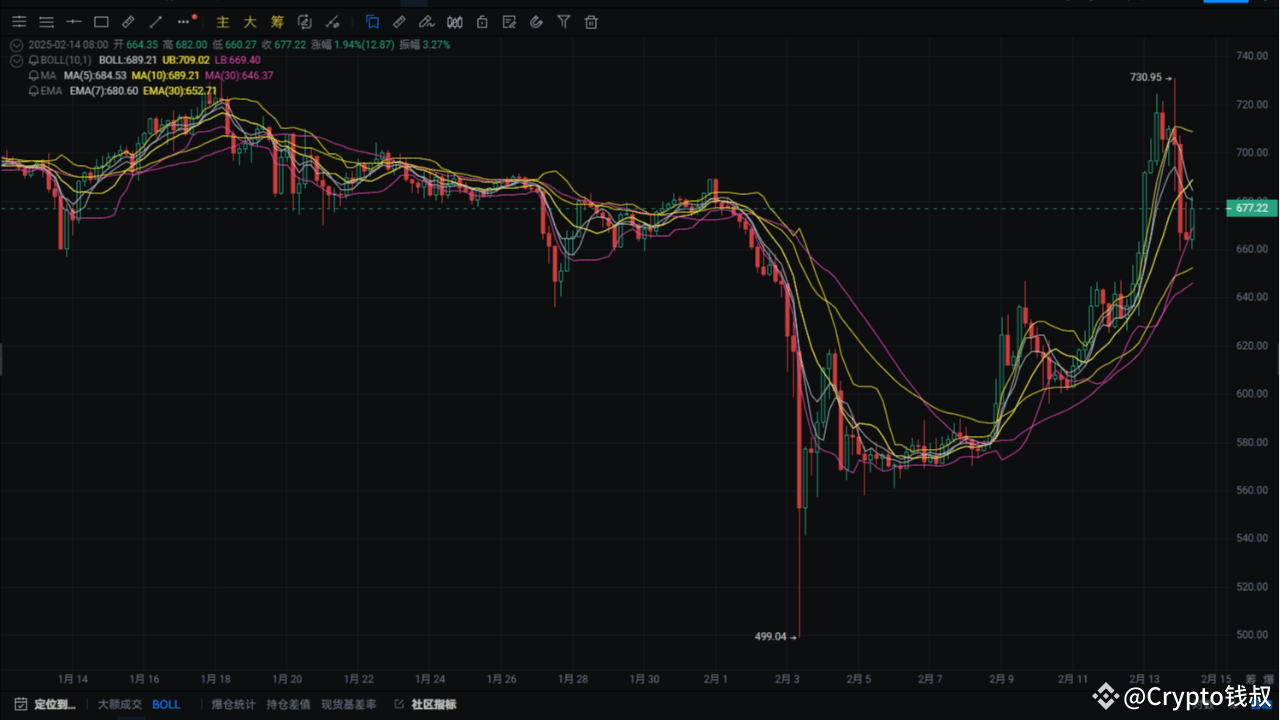 Tendința actuală a BNB arată o puternică tendință de creștere, dar este necesar să fim atenți la riscul de corecție a benzii Bollinger superioare. Se recomandă să ne adaptăm flexibil, ajustând strategia în funcție de fluctuațiile prețului, stabilind în mod rezonabil nivelurile de suport, rezistență și punctele de stop-loss. Se estimează că intervalul de preț de astăzi este între 650.00-740.00, păstrând o gândire flexibilă în tranzacționare și urmărind schimbările sentimentului pieței.