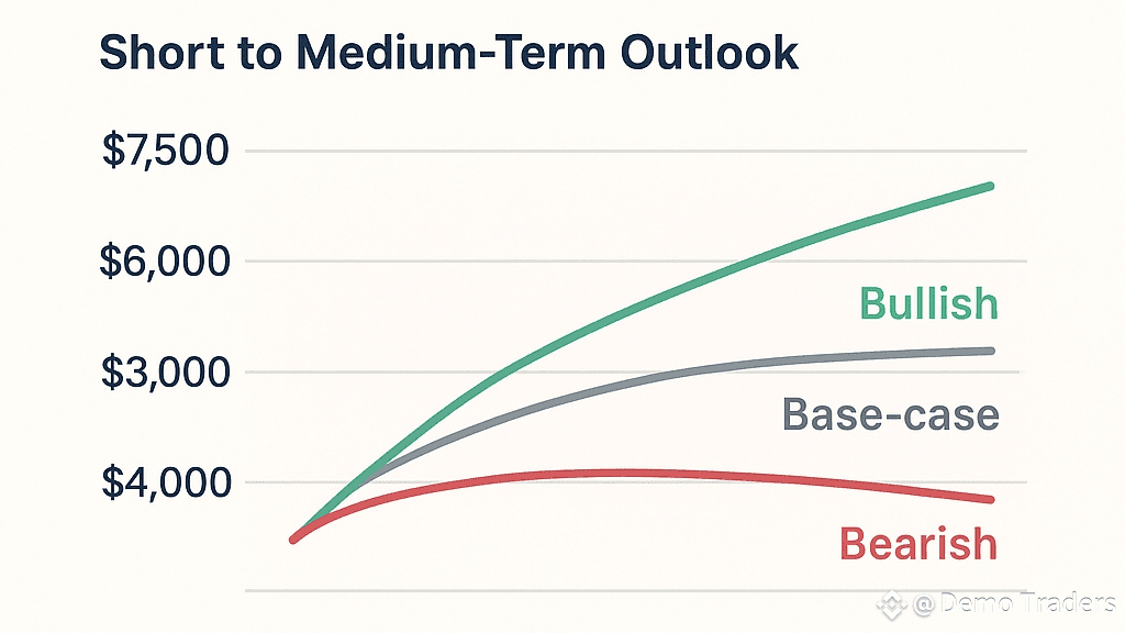Calea de preț a Ethereum rămâne incertă, dar perspectiva arată atât oportunități, cât și riscuri. Pe termen scurt până la mediu, ETH ar putea oscila între 3.300 $ și 7.500 $ în funcție de condițiile de piață. Pe termen lung, dacă adoptarea, actualizările și fluxurile instituționale se aliniază, Ethereum ar putea intra în teritoriul cu cinci cifre.