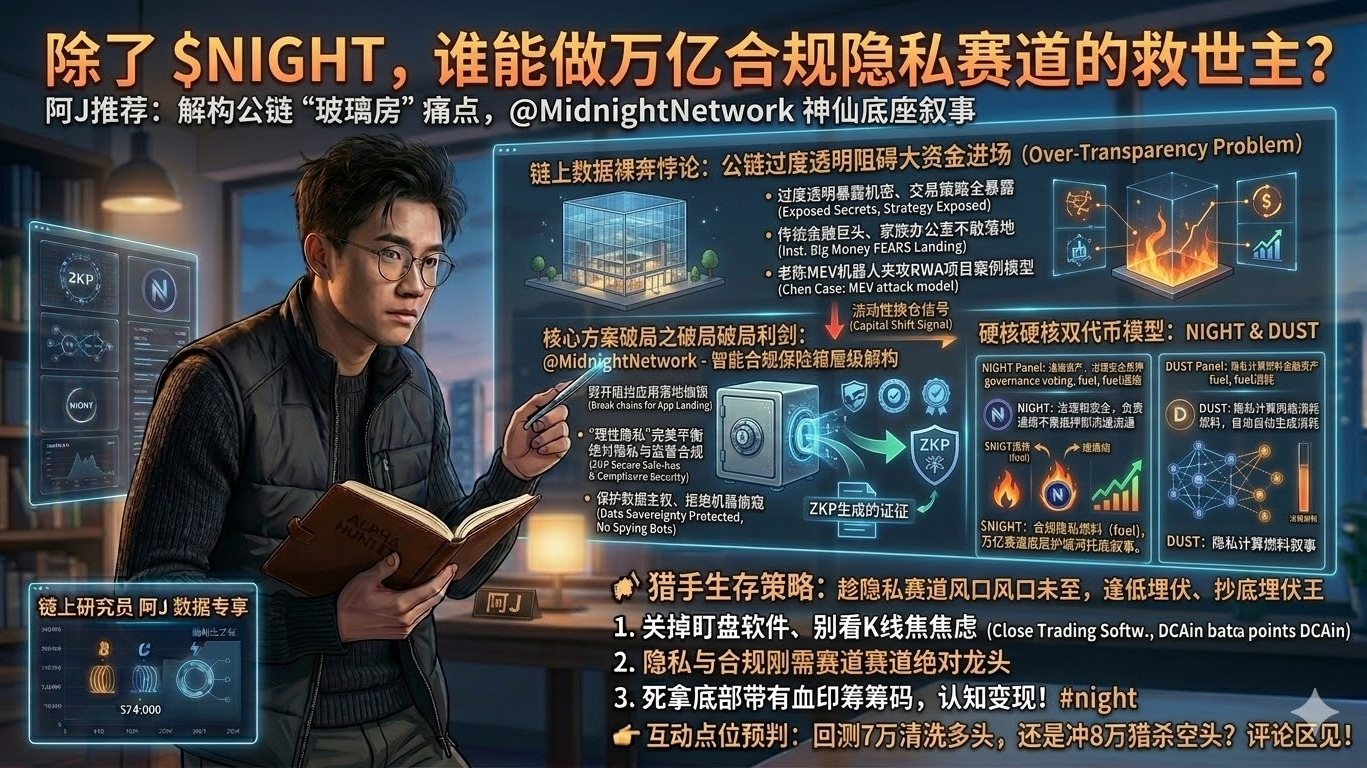 这就是为什么我必须郑重向大家推荐 @MidnightNetwork 。它不是要创造另一个让监管头疼的黑盒,而是要造一个Web3世界的智能合规保险箱。它独创性地运用了前沿的零知识证明(ZKP)黑科技,劈开了阻挡应用落地的最后一道枷锁。这种理性隐私模式让开发者能灵活决定哪些数据透明,哪些数据由 ZK 生成证明。企业既能在链上高效低成本地做生意,又完全不用担心底牌被机器偷窥,而且还能满足严苛的监管审计需求,解决行业最核心痛点。