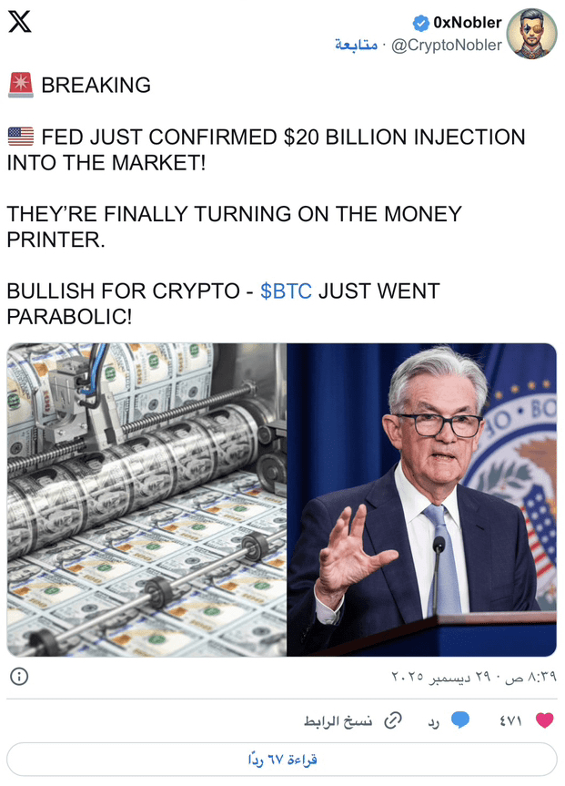 Rezerva Federală a confirmat oficial injecția de lichiditate de 20 de miliarde de dolari în sistemul financiar, ceea ce a dus la o schimbare imediată în sentimentul pieței. Investitorii s-au mișcat rapid, deoarece acest pas a fost considerat un semnal de reînnoire a sprijinului pentru stabilitatea financiară și buna funcționare a piețelor. Apetitul pentru risc s-a îmbunătățit în diverse clase de active, inclusiv acțiuni, obligațiuni și active digitale. Piețele criptomonedelor au reacționat puternic, traderii anticipând condiții de lichiditate mai ușoare în perioada următoare.