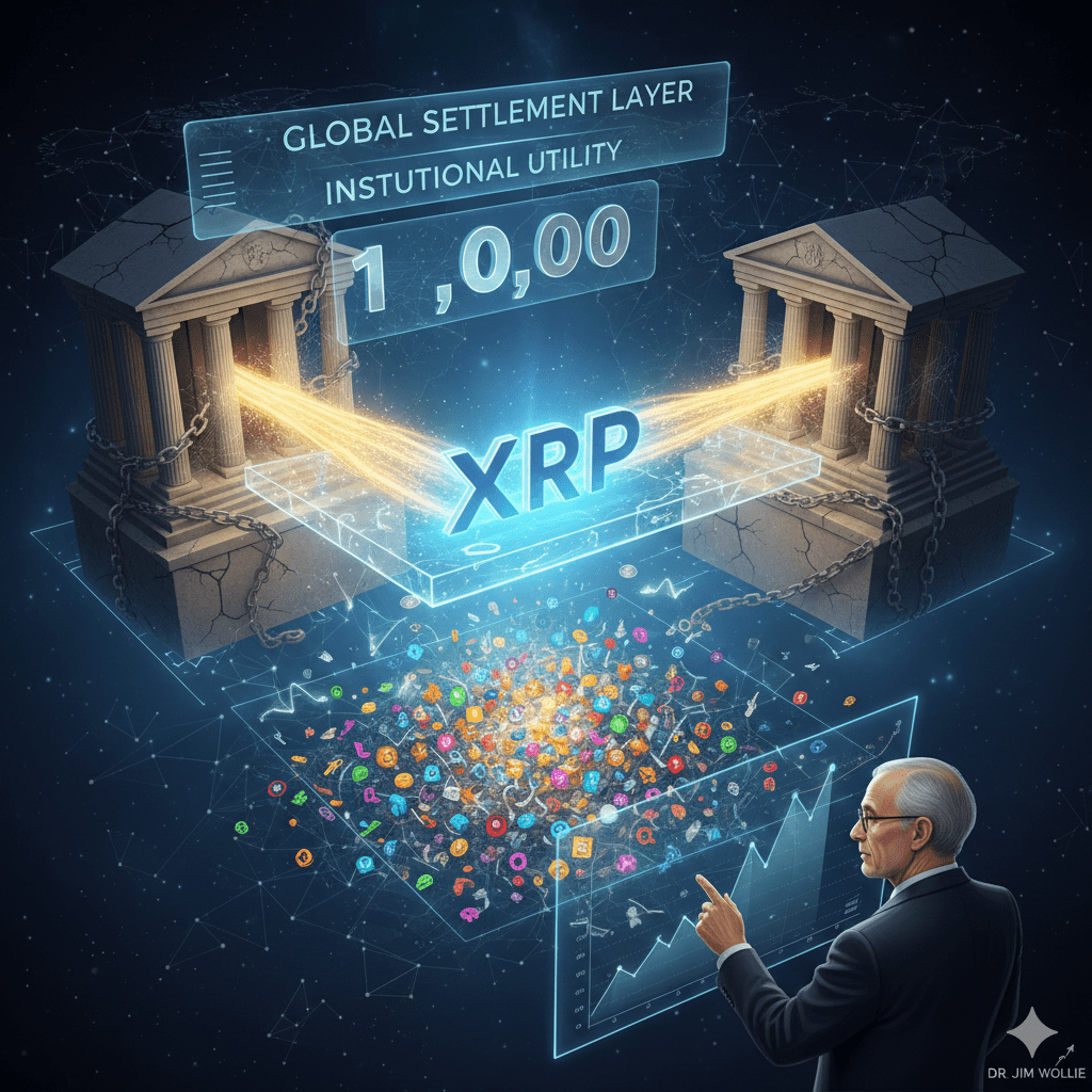 Dr. Willie sugerează că evaluarea XRP a fost convenită în mod discret de instituții puternice care aveau nevoie de un activ de punte capabil să gestioneze fluxuri masive de lichiditate globală.