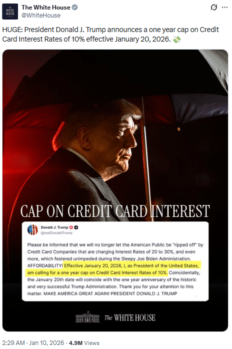 🔹 Limitarea ratelor dobânzilor pentru cardurile de credit la 10% de către Trump ar putea genera interes pentru DeFi