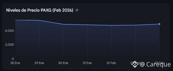 Para hoy 03 de febrero de 2026, PAXG se encuentra en una fase de recuperación tras una corrección volátil, cotizando actualmente entre $4,850 y $4,960. El mercado ha mostrado una recuperación en forma de "V" después de haber caído desde su máximo histórico de $5,619 alcanzado el pasado 29 de enero.