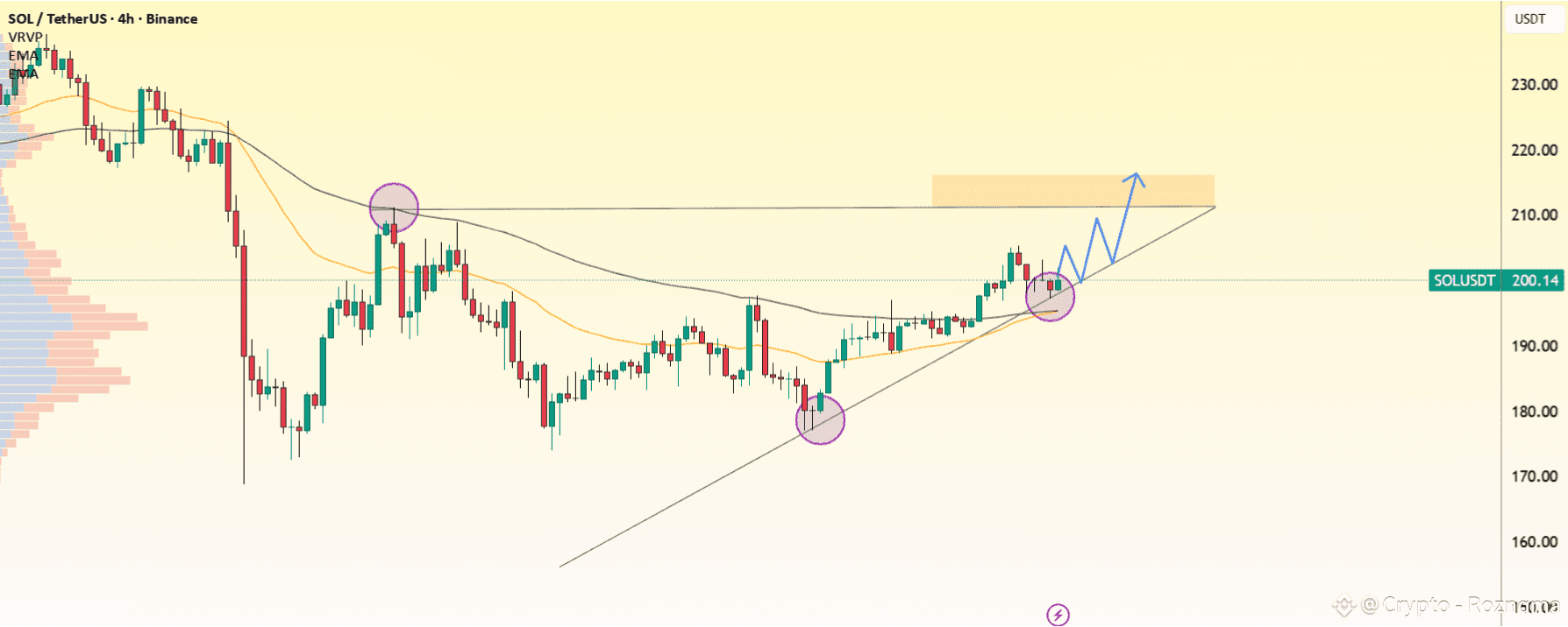 The buzz around Solana isn’t just technical — positive ecosystem news and fresh capital inflows are fueling this move. If the $200 level continues to hold as strong support, the next leg up could be explosive. ⚡