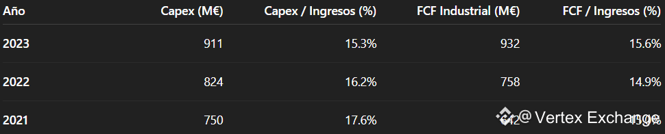 Durante los últimos tres años, Ferrari ha mantenido una conversión media de ingresos a flujo de caja libre superior al 15%, algo de locos para un fabricante de automóviles. Mientras la mayoría de las marcas luchan por generar caja después de enormes inversiones en fábricas, inventario y logística, Ferrari demuestra que puede invertir agresivamente sin sacrificar liquidez.