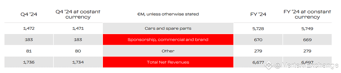 4. Actividades de Marca y Carreras: Los ingresos por patrocinio, comerciales y de marca alcanzaron los €670 millones en 2024 (un aumento del 17.1% respecto al año anterior), impulsados por nuevos patrocinios y actividades de estilo de vida. La mejora en la clasificación de la Fórmula 1 también contribuye positivamente.