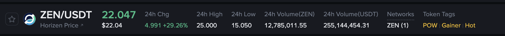 ZEC следовал за DASH с приростом в 21%, достигнув $469, в то время как другие монеты в секторе крипто-приватности также получили значительные прибыли: Horizen (ZEN) вырос на 29% до $22.047, PIVX прыгнул на 62% до $0.3823, а Secret (SCRT) увеличился на 27% до $0.2091.