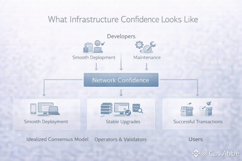 Upgrade chaos is another silent issue of crypto infrastructure. Most ecosystems have an upgrade process that is more event-based: downtime, manual processes, version incompatibility, node operators scrambling to keep up. Mainstream systems do not operate that way. Mainstream systems upgrade work such as airlines reschedule: scheduled, coordinated, little disruption.