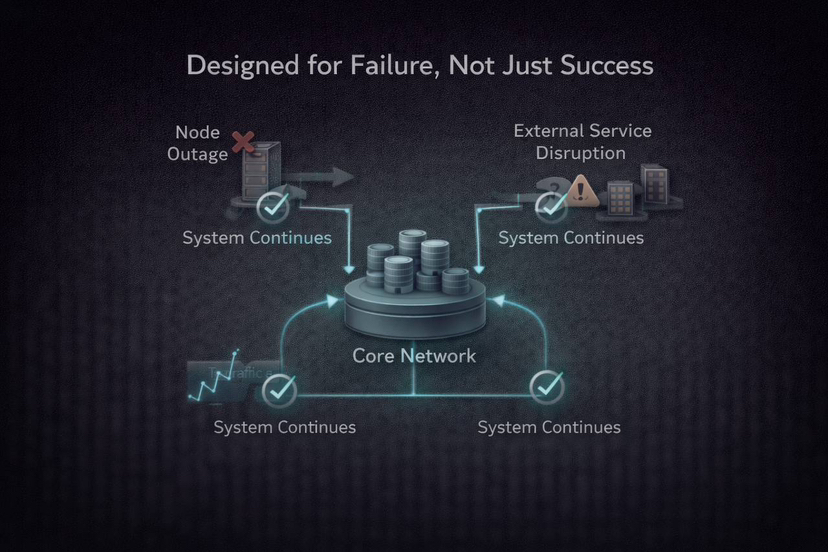 Счастливый путь не является самым сложным аспектом финансовой инфраструктуры; это плохие дни. Сбой узлов, сегментов сети, всплески объема, крайние случаи спама или сбои сервисов в других местах. Серьезная цепочка не должна надеяться, что это никогда не произойдет; она планирует их возникновение.