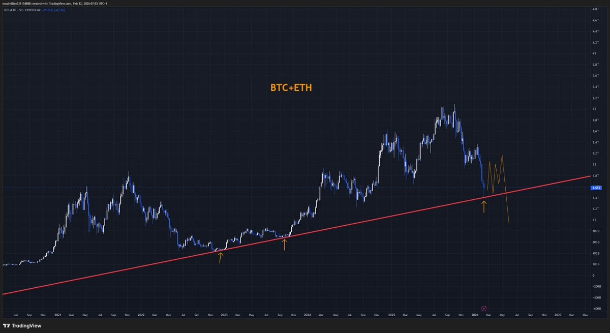 Some charts tell a clear story at a glance. For me, the combined market cap of $BTC + $ETH is one of those charts right now.