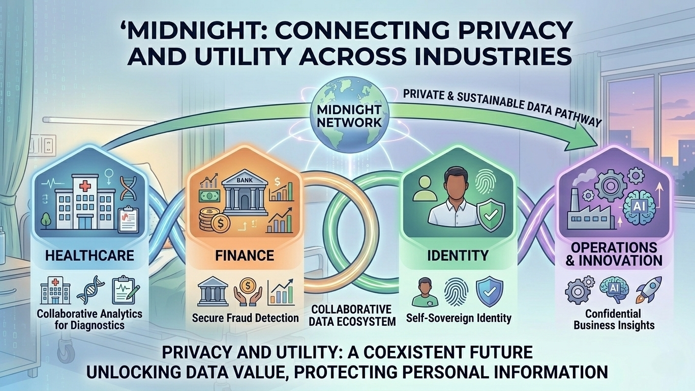 Beyond healthcare, finance, and identity, Midnight could impact emerging applications such as supply chain management, energy grid analytics, and privacy-preserving marketing. In these areas, confidential data can be analyzed collaboratively, enabling operational efficiency and insight generation without exposing sensitive information. For example, suppliers could coordinate on logistics while keeping proprietary production data private, or energy consumption data could inform grid optimization without revealing household behaviors.