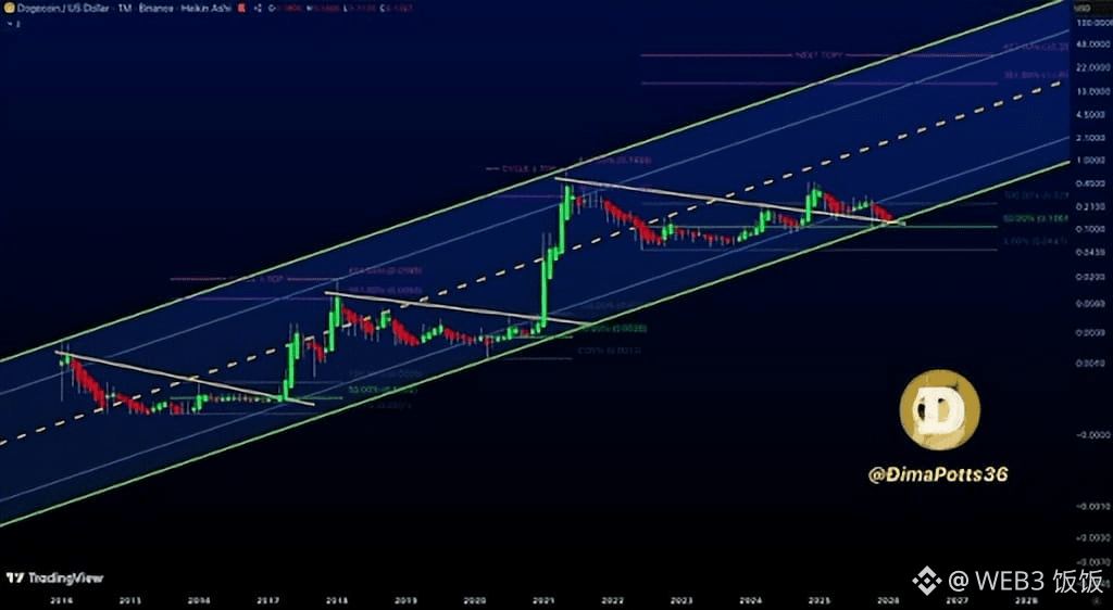从短线来看,市场仍然处于震荡整理阶段,但从 DOGECAPITAL 的视角来看,这个价格不过是长期结构中的“早期区间”。