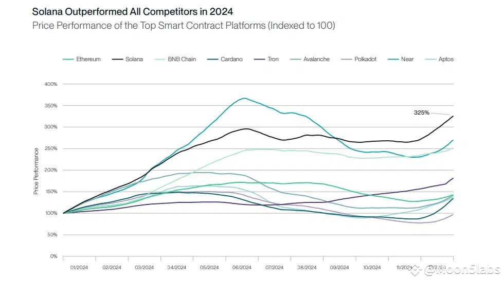 In 2023, Solana experienced a 239% growth in daily active accounts, despite challenging market conditions. At the beginning of 2024, it saw explosive growth of 2,800%. This momentum surpasses many competitors, including some Ethereum Layer 2 solutions.