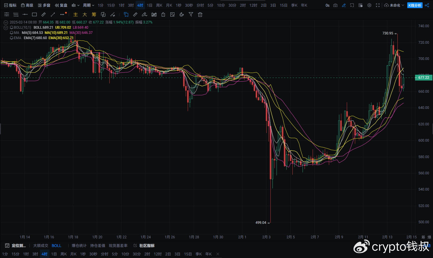Bollinger Bands: The current price is close to the upper Bollinger band, presenting some retracement risk. If it breaks through 730.00, there may be accelerated upward momentum.