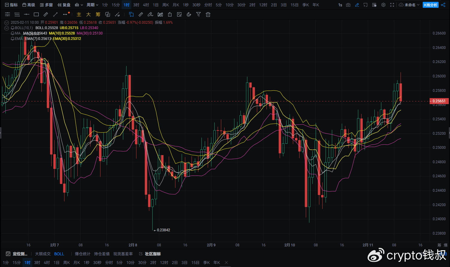 MA and EMA: Short-term moving averages (such as the 5-day moving average) still support price increases, while the 30-day moving average indicates some retracement pressure on the price.