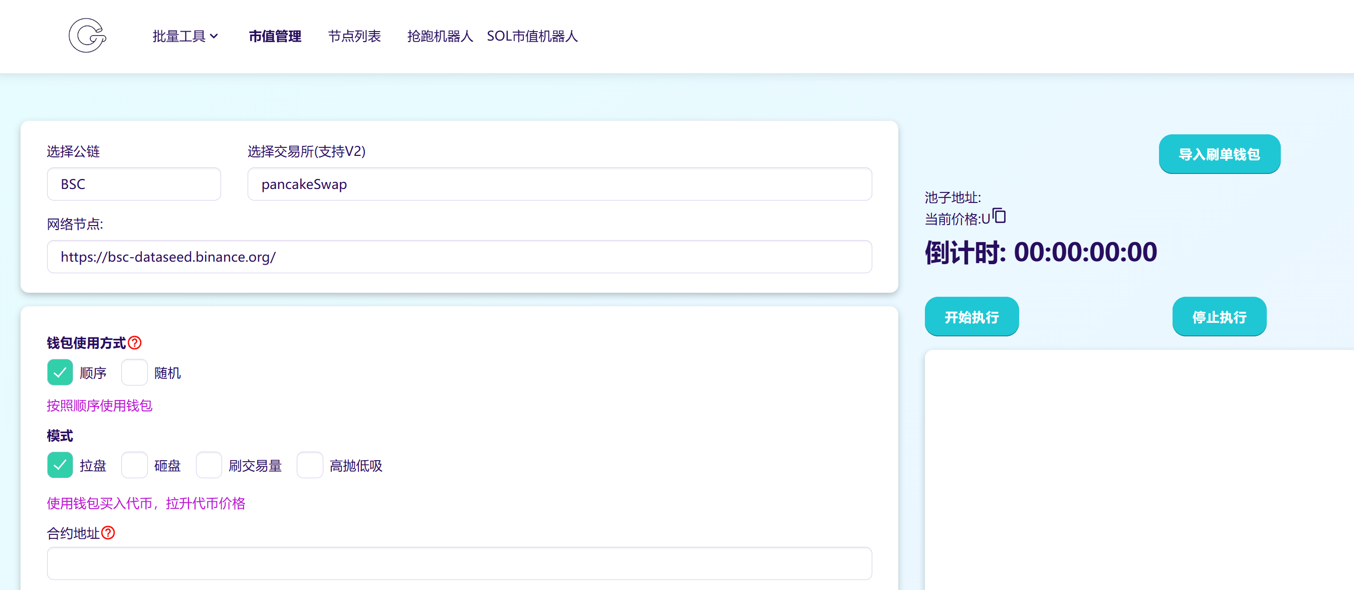 The market capitalization management bot is an intelligent trading tool that can simulate real market behavior, optimize market depth, and increase token visibility. It allows users to set target market cap, control trading fluctuations, and execute automatic pump or dump operations, providing project teams with controllable market management strategies.