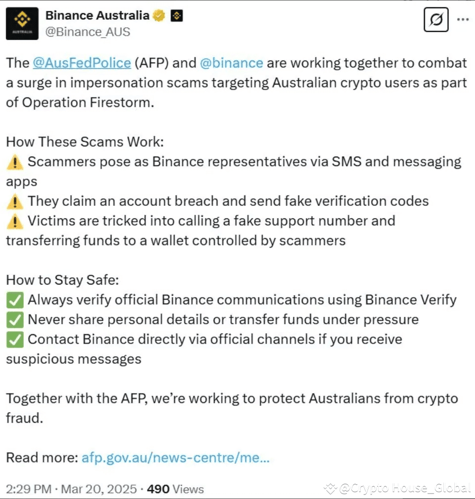 The Australian Federal Police (AFP) have warned over 130 individuals about a new SMS scam targeting cryptocurrency users by impersonating legitimate exchanges like Binance. Scammers send fake messages claiming account breaches and instructing victims to set up new wallets.