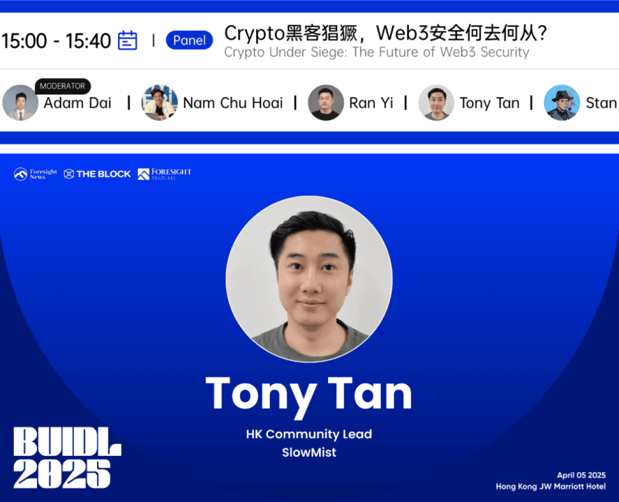 This BUIDL 2025 is co-hosted by Foresight News, The Block, and Foresight Ventures, aiming to build an efficient bridge for global crypto practitioners to collaborate and communicate. Industry giants, track unicorns, top VCs, and well-known KOLs will ignite sparks of creativity and stimulate the brilliance of ideas here. Tony Tan, head of the SlowMist Hong Kong community, will share his profound insights and forward-thinking reflections on the crypto ecosystem at BUIDL 2025.