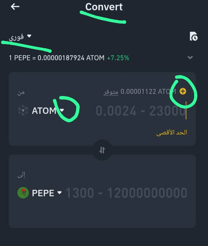 Convert in Binance means converting from one currency to another, for example, converting from ATOM currency to PEPE currency.
