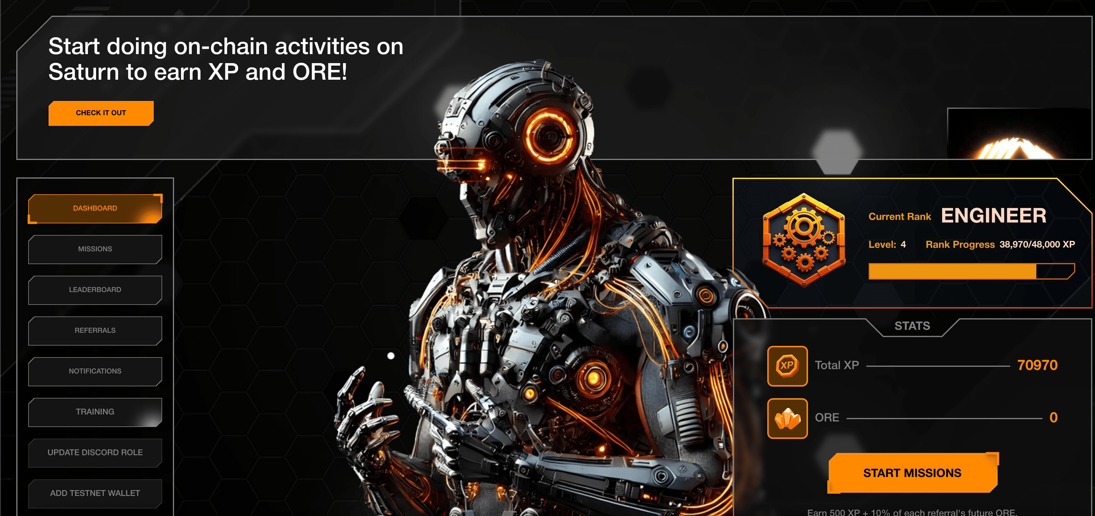 Currently, interactions can only yield ORE crystals by swapping Saturn, so step five can be interacted with once a day.