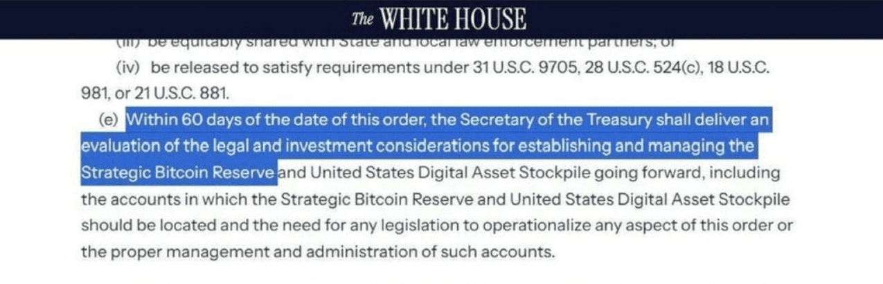 The policy requires the Treasury to submit a feasibility report on Bitcoin reserves within 60 days (by May 5), including how to increase holdings in a 'budget-neutral' manner (for example, by purchasing with confiscated illicit funds rather than raising taxes).More details may be released after the due date, and the market may fluctuate again.