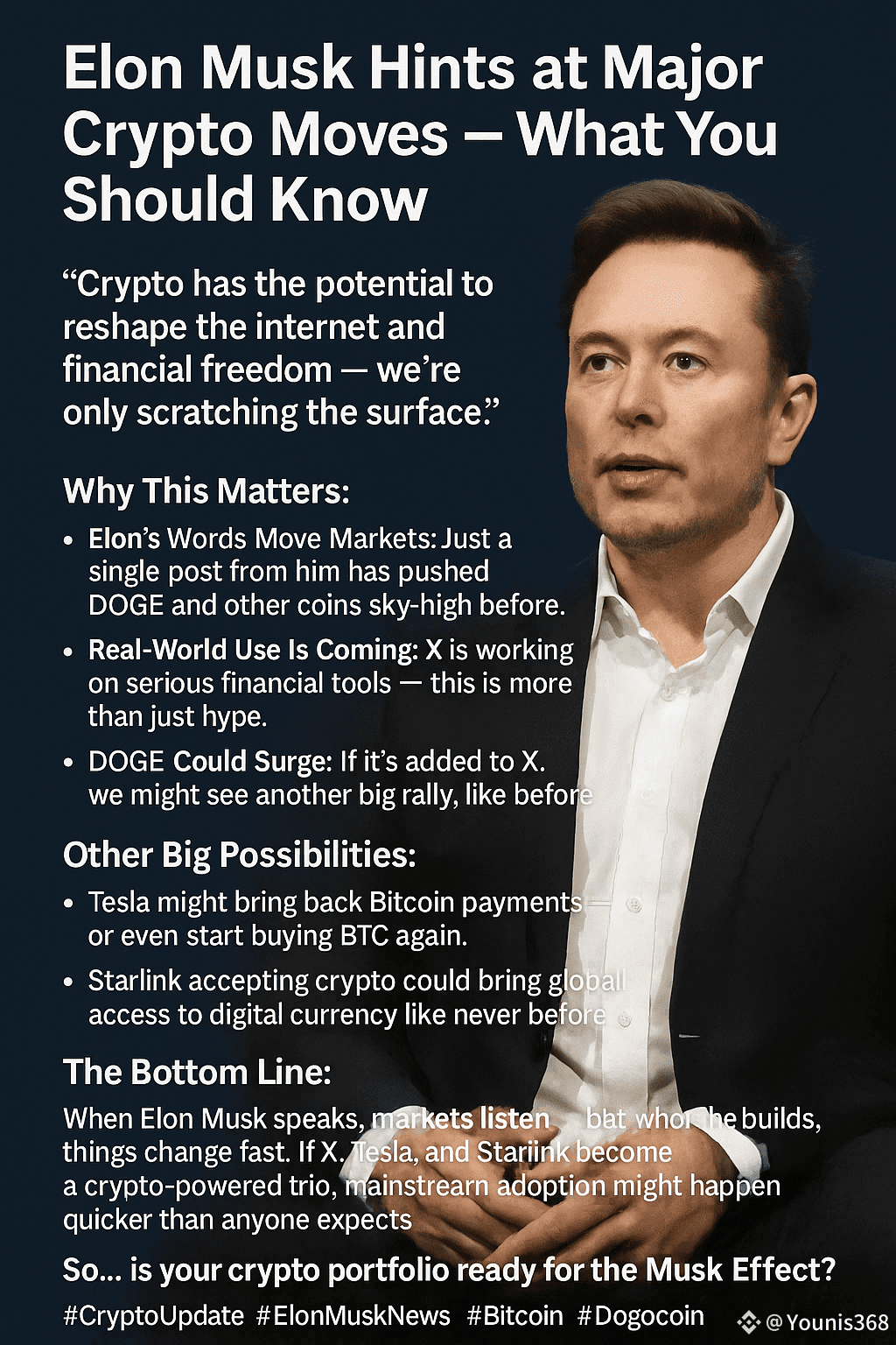 When #Elon Musk speaks, markets listen — but when he builds, things change fast. If X, Tesla, and Starlink become a crypto-powered trio, mainstream adoption might happen quicker than anyone expects.