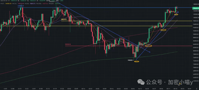 Currently, Bitcoin has just entered the extreme greed zone (75). Historical experience shows that it may continue to surge to around 85, corresponding to a price near 115,000 USD, but market tops are not fixed: some top at 75, while others may even drag to 95, like 73,000 in March 2023.