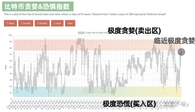 Referring to a historically high-winning indicator—the Greed and Fear Index: every time the bull market peaks, it appears in the 'extreme greed' phase (between 75-95). Afterwards, the coin price typically retreats until it bottoms again in the 'extreme fear' phase.