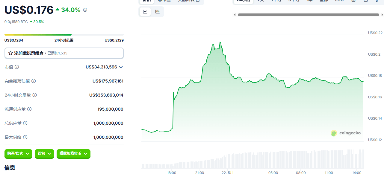 The current price of HAEDAL is $0.1749, which still needs to increase by 42.9% to reach the target price of $0.25. The market data shows: