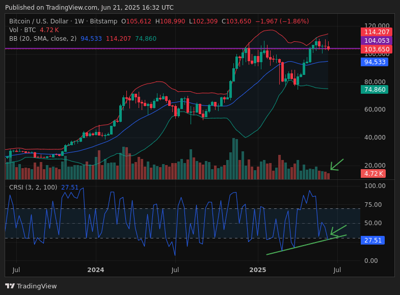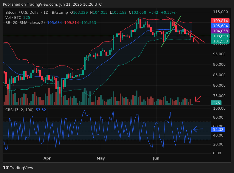 Understanding all these signals, I could say that $BTC is at a potential decision point. On the one hand, the price is under bearish pressure, but on the other, it appears to be building strength. We'll see if it has what it takes to remain at the 104k support and rebound, or if it heads for a new destination via 94k.