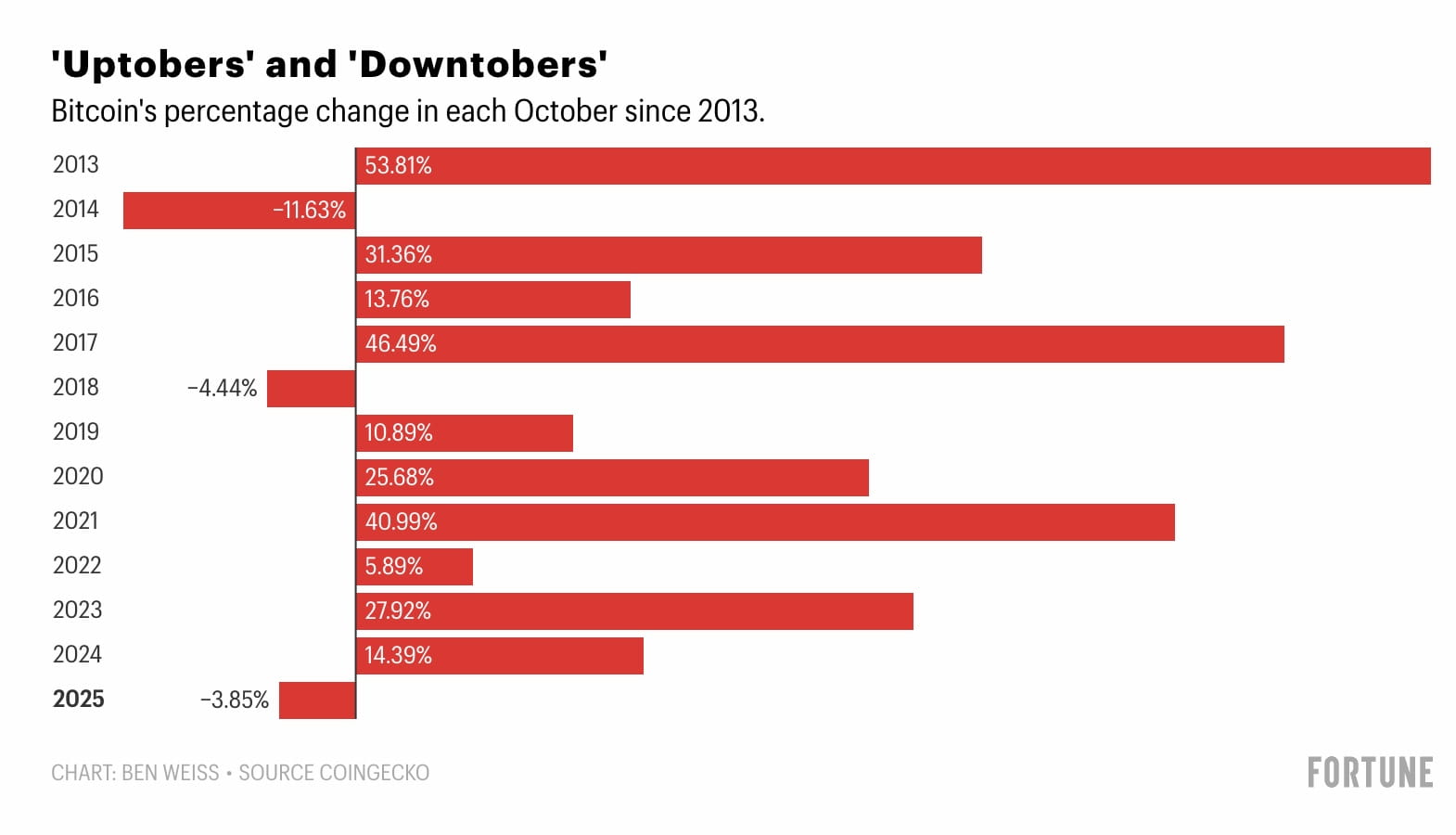Bitcoin ended October down 3.7%, marking its worst “Uptober” performance since 2018. The Crypto Fear and Greed Index remained in the “Fear” zone at 42, underscoring persistent market caution despite temporary rallies.