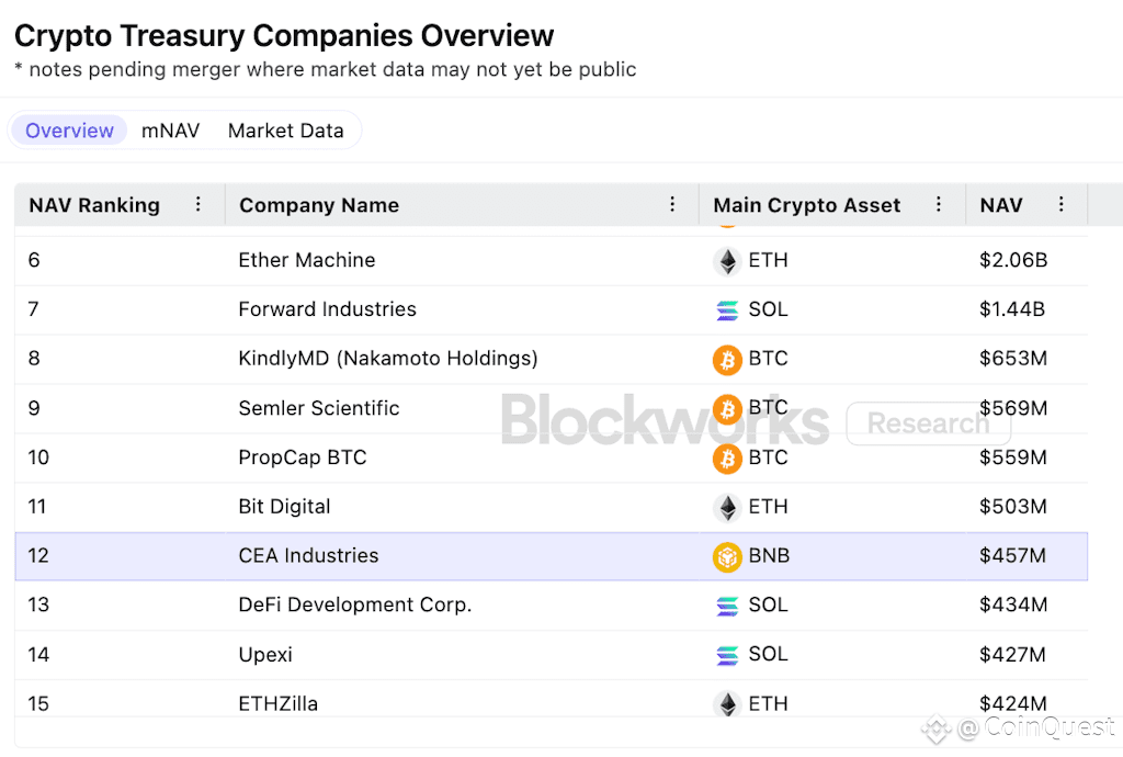 For sure, two well-timed announcements for BNB treasury companies had something to do with that. But only CEA Industries via its asset management arm BNB Network Company is active right now, and it’s accumulated BNB worth a little over $420 million per Blockworks Research data so far.